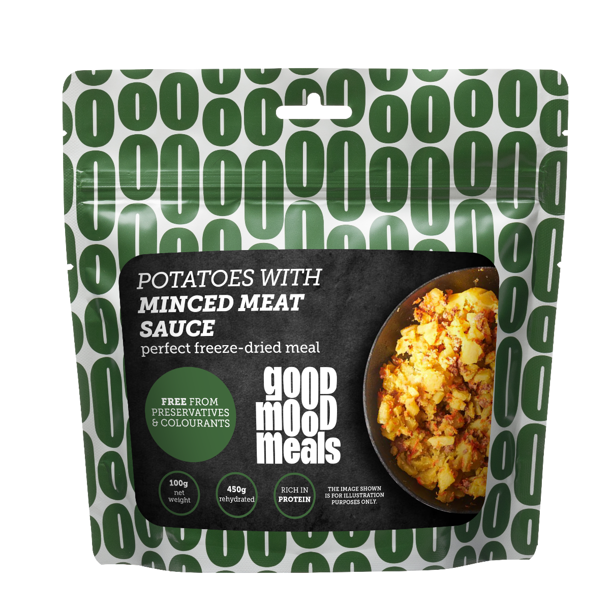 Традиционный вкус – картофель с мясным соусом из фарша – это питательное блюдо для походов и приключений на природе. Насладитесь тёплым и сытным лиофилизированным картофелем с насыщенным мясным соусом, созданным для тех, кто ценит яркий вкус даже вдали от дома. Подходит для кемпинга, путешествий и хранения в качестве аварийного запаса. Просто добавьте горячую воду и наслаждайтесь домашним вкусом в любом месте.