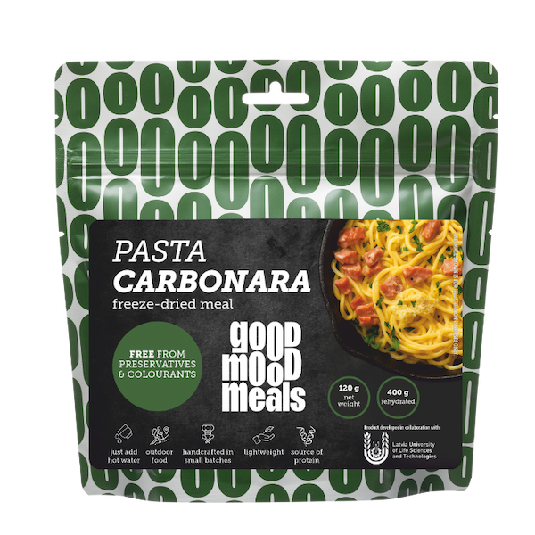 Кремовая и вкусная Pasta Carbonara – классическое блюдо в любом месте. Побалуйте себя насыщенным и сливочным вкусом лиофилизированной пасты Карбонара, которая идеально подходит для кемпинга, походов или длительного хранения. Блюдо сочетает макароны, сливочный соус, копченую свинину и специи, создавая сытный прием пищи. Просто добавьте горячую воду – и получите блюдо ресторанного качества в любое время.